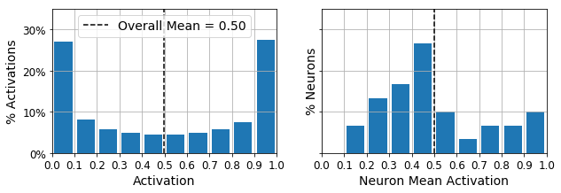 Notice that the outputs are indeed very close to 0 or 1 (left graph):