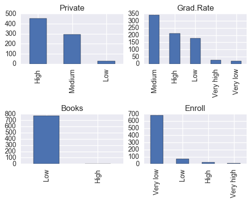 college['Enroll'] = pd.cut(college['Enroll'], 4, labels=['Very low', 'Low', 'High', 'Very high'])