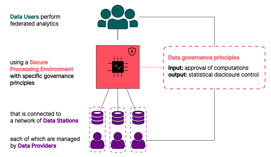- Apply some form of statistical disclore control (SDC) and/or privacy-enhancing technologies (PETS). Note we SDC can include differential privacy (DP), but we take a more generic approach that we want to protect the raw data as such, for example to provide guarantees to data holders with respect to commercial interest, trade secrets and the like. data privacy/security through PETs. Practically, all approaches to FA should have output control