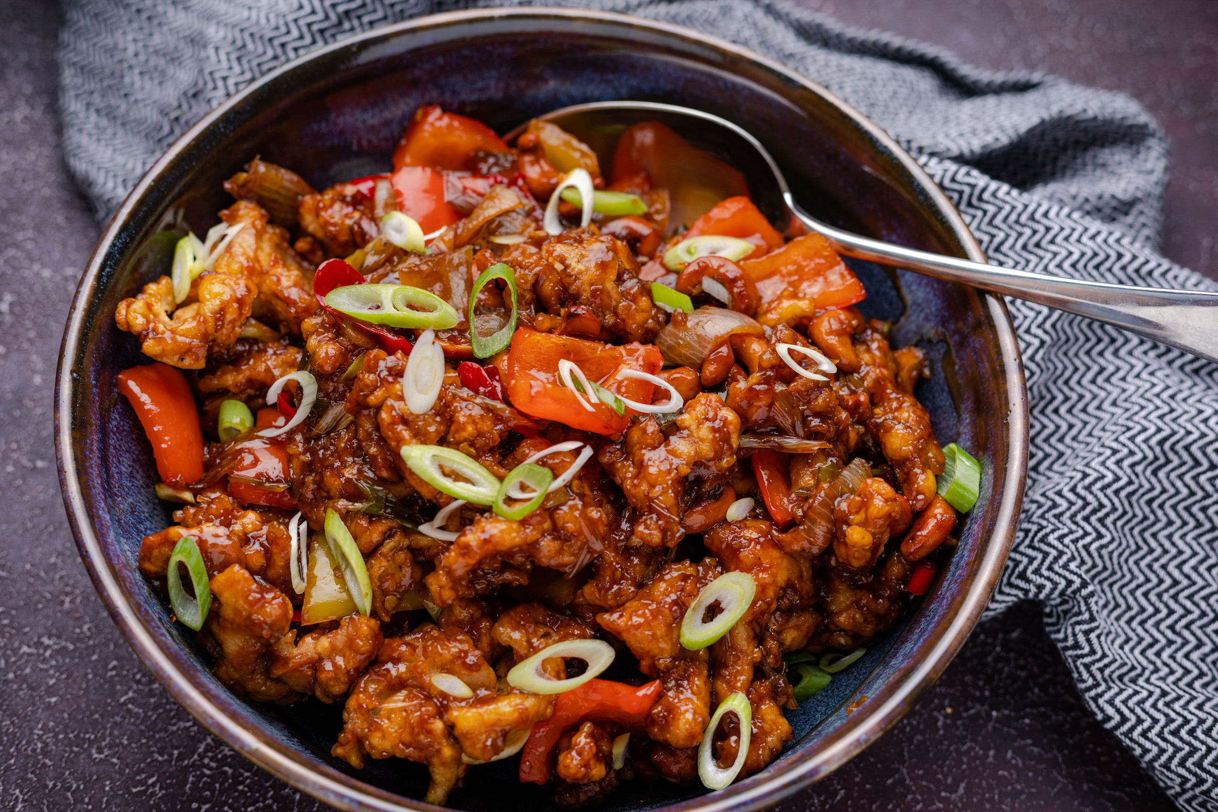 - Het frituren van de kippendijen is de grootste klus. Terwijl je dat rustig aan het doen bent, kun je op de andere pitten met gemak de overige stappen doen. Dus het bakken van de groenten en het maken van de saus. Zorg dan wel dat je vooraf vast alles hebt gesneden, dan kun je lekker efficiënt doorwerken.